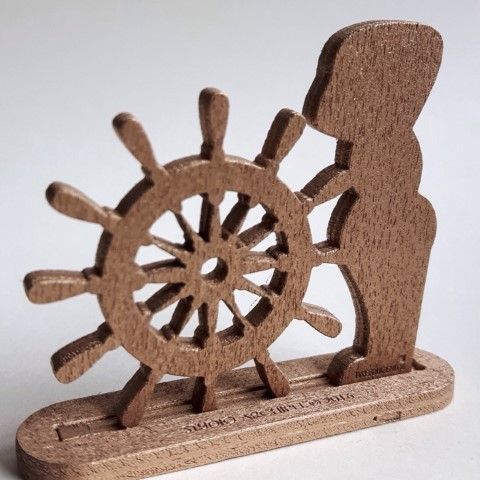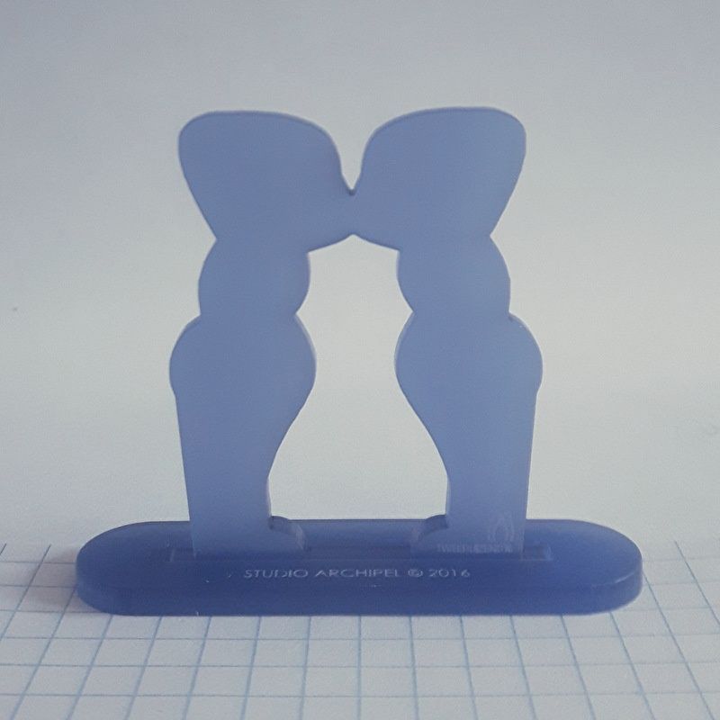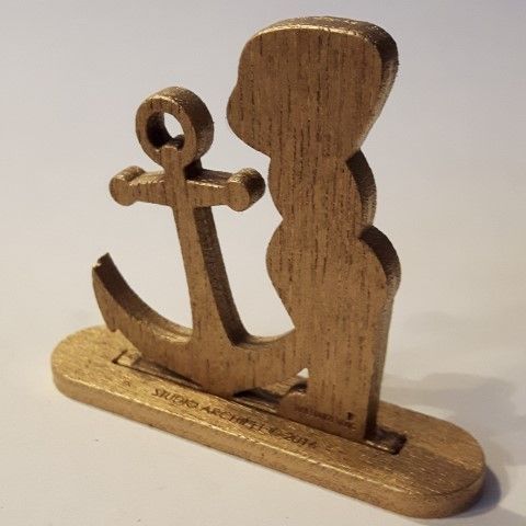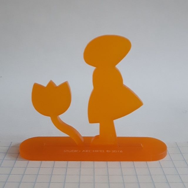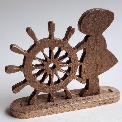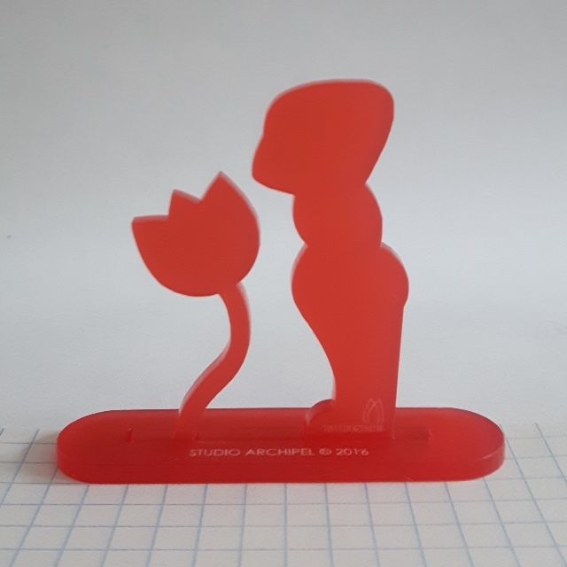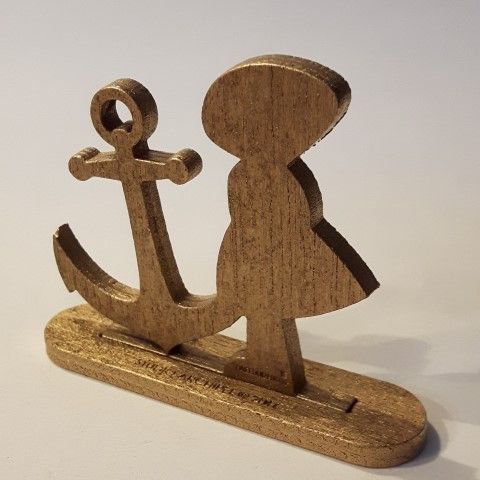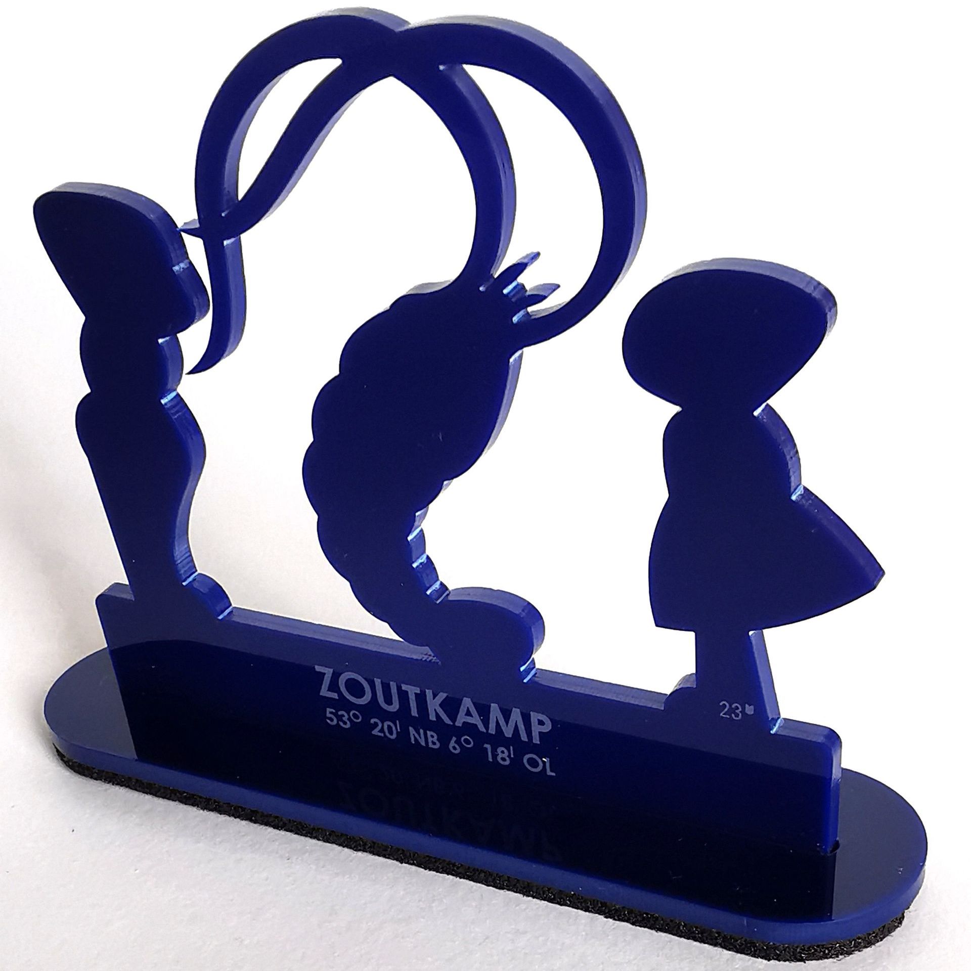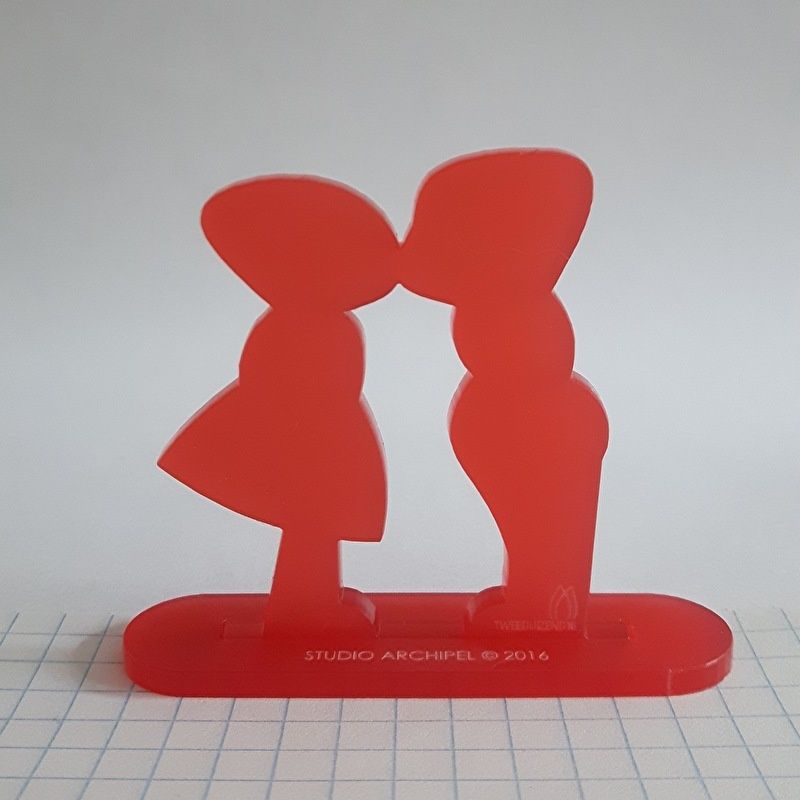 Lasergesneden figuurtjes, staande op een voetje met sleuf.