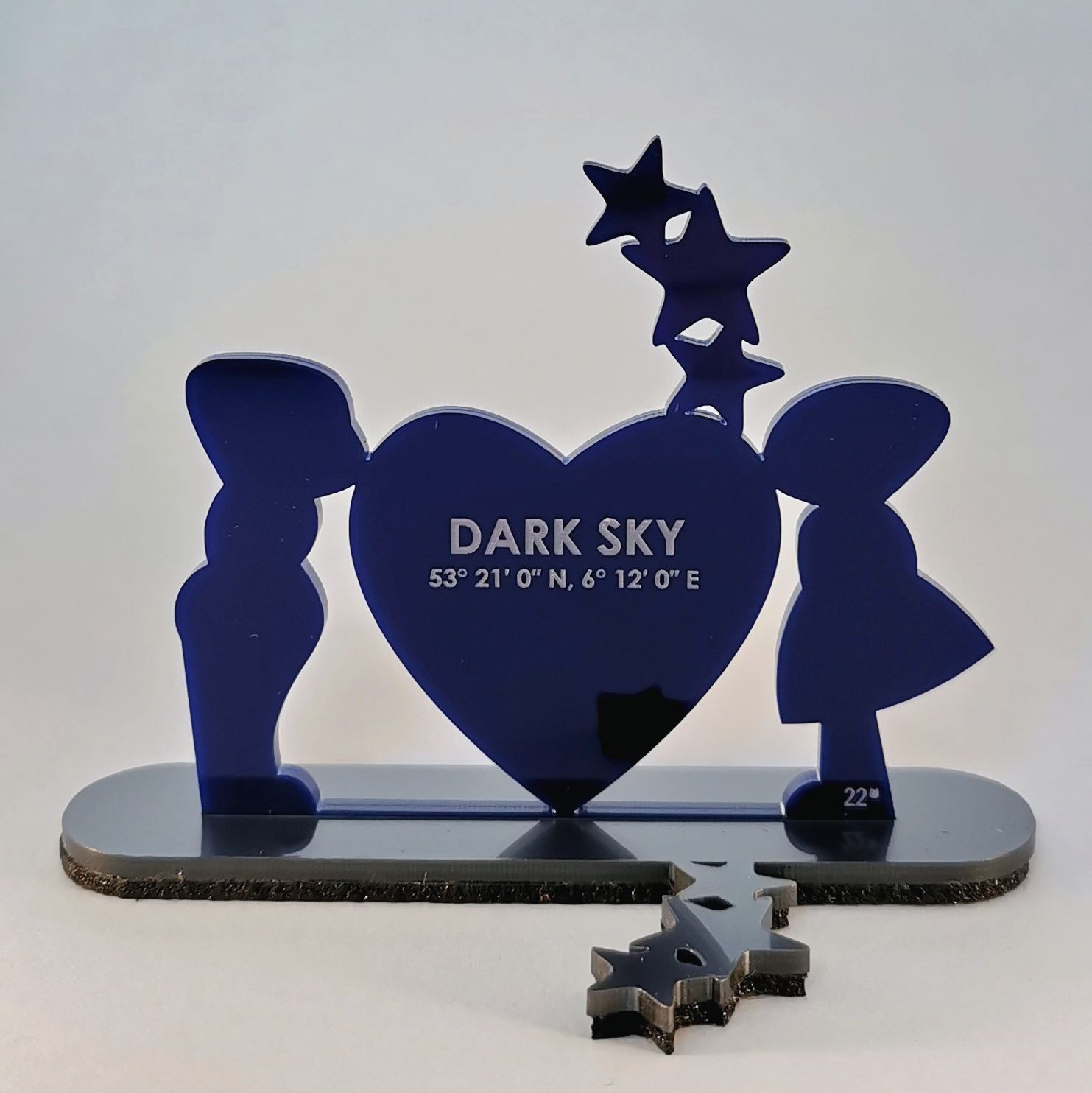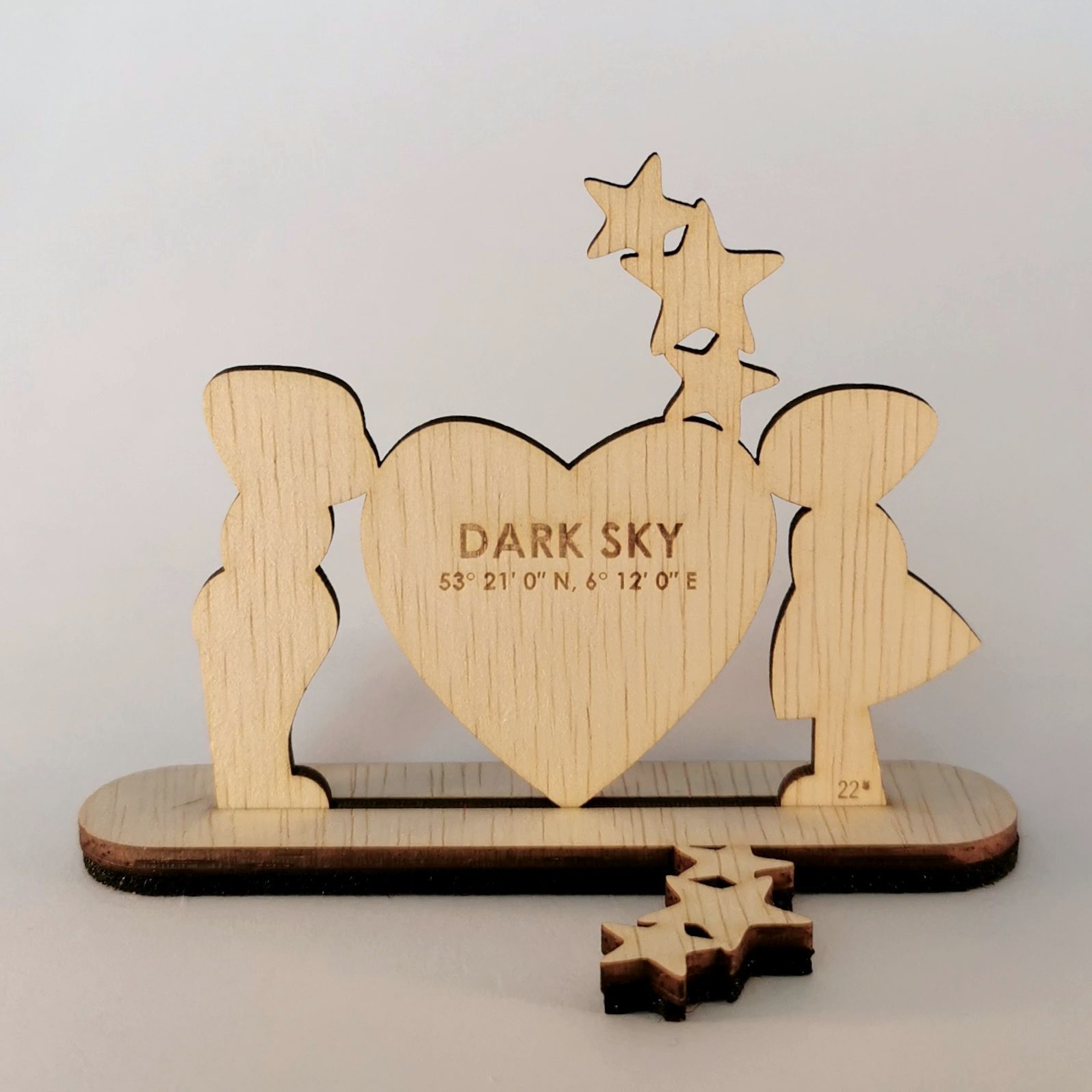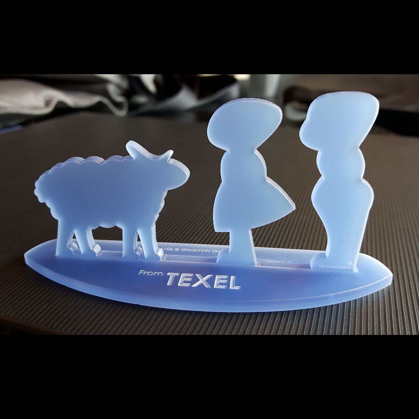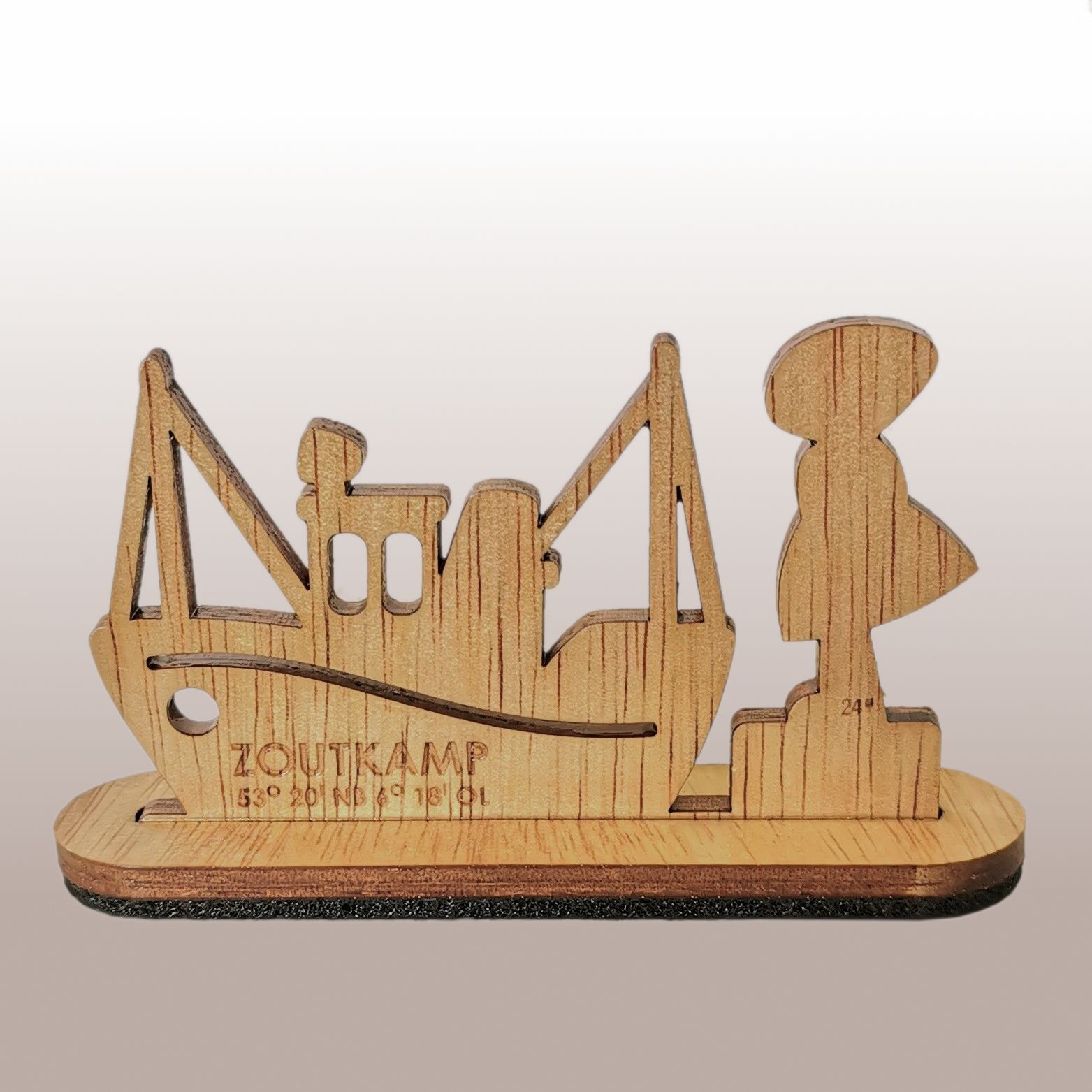 Lasergesneden figuurtjes, staande op een voetje met sleuf.