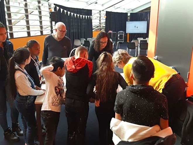 Met 3D techniek maken de kinderen een nieuw product van biologisch afbreekbaar plastic.